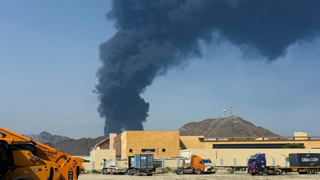- Various regional outlets covering smoke near Dubai, port fires, and Strait of Hormuz chaos